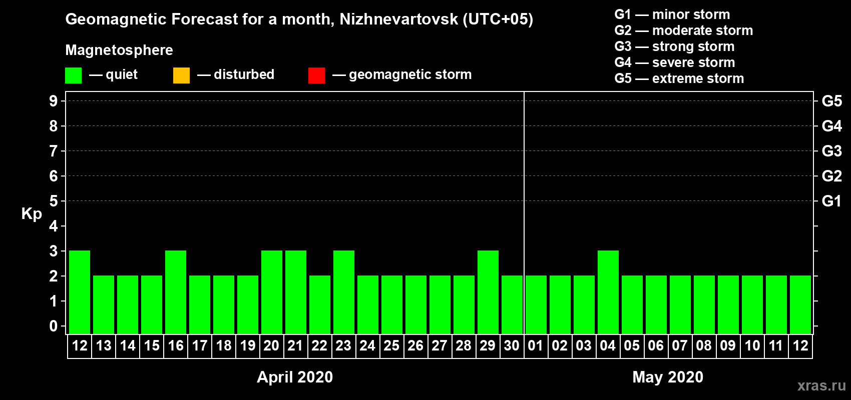 Geomagnetic storm forecast in Nizhnevartovsk for Apr 12, 2020
