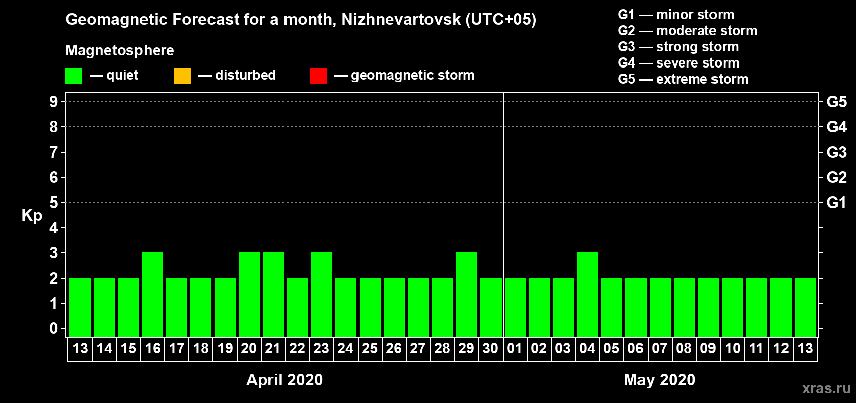 Geomagnetic storm forecast in Nizhnevartovsk for Apr 13, 2020