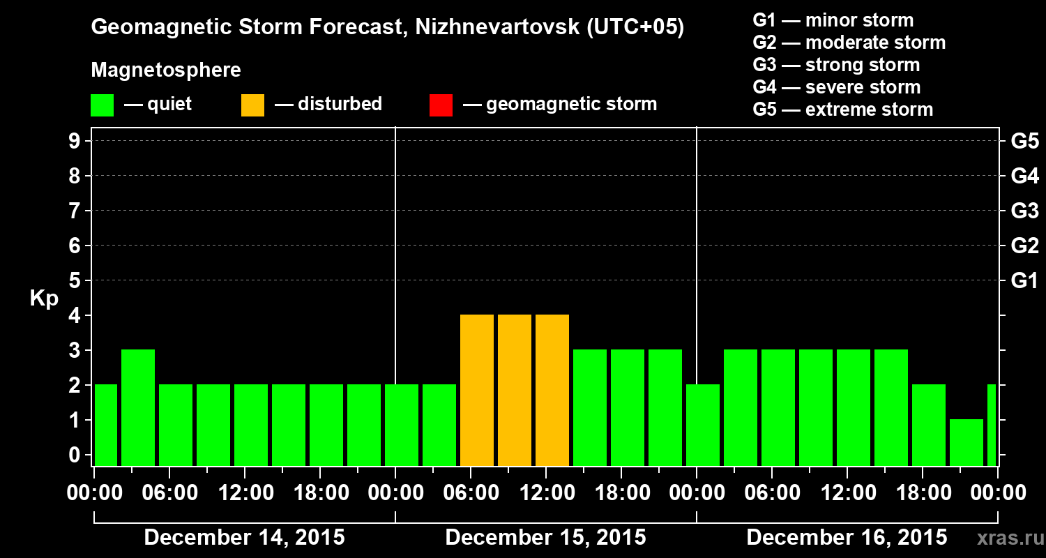 Geomagnetic activity forecast in Nizhnevartovsk — Dec 14, 2015