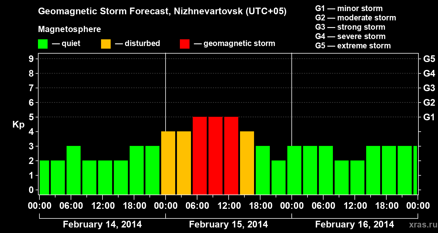 Geomagnetic storm forecast in Nizhnevartovsk for Feb 14, 2014