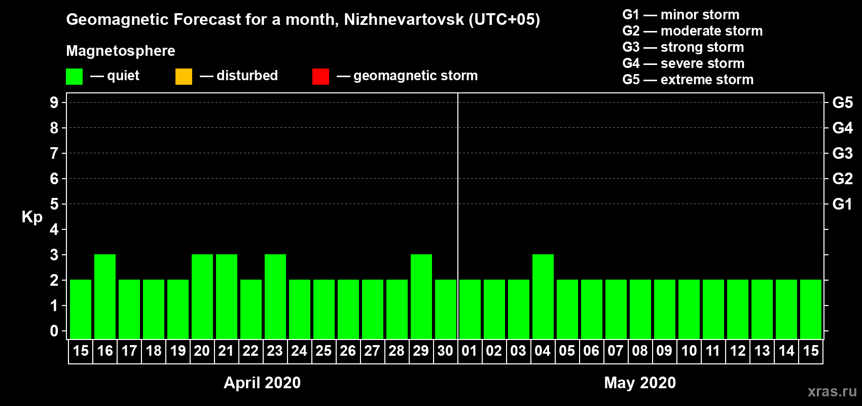 Geomagnetic activity forecast in Nizhnevartovsk — Apr 15, 2020