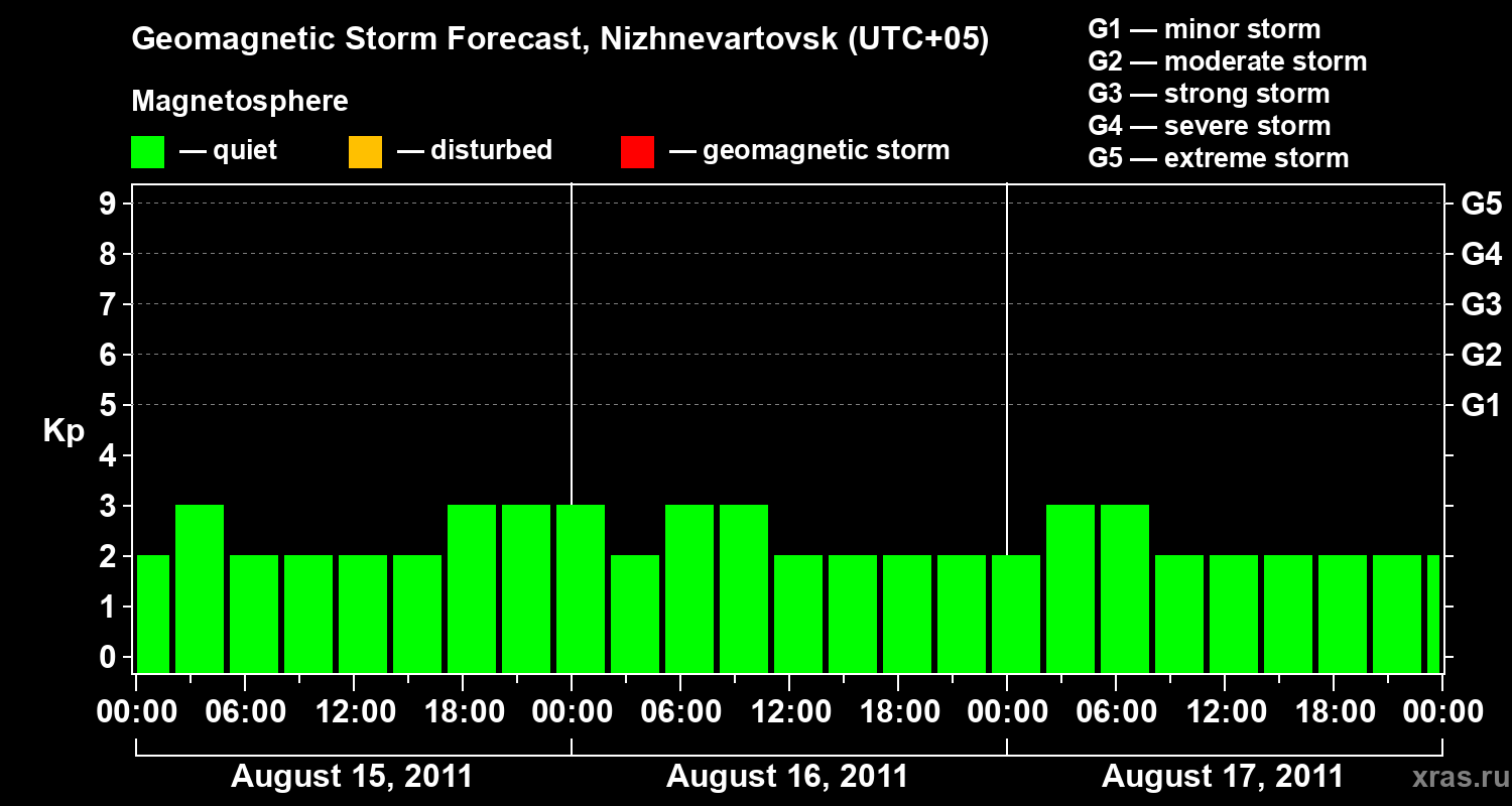 Geomagnetic activity forecast in Nizhnevartovsk — Aug 15, 2011