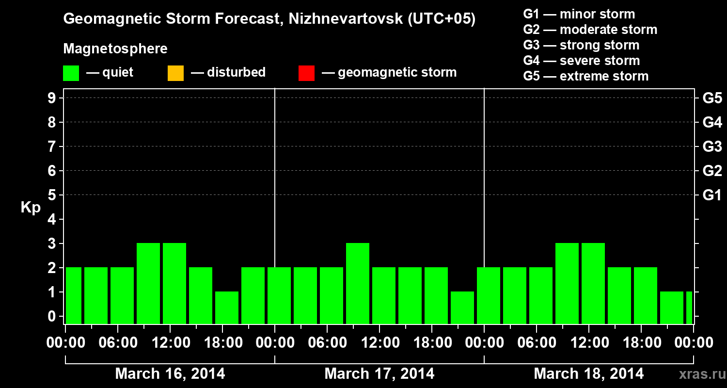 Geomagnetic storm forecast in Nizhnevartovsk for Mar 16, 2014