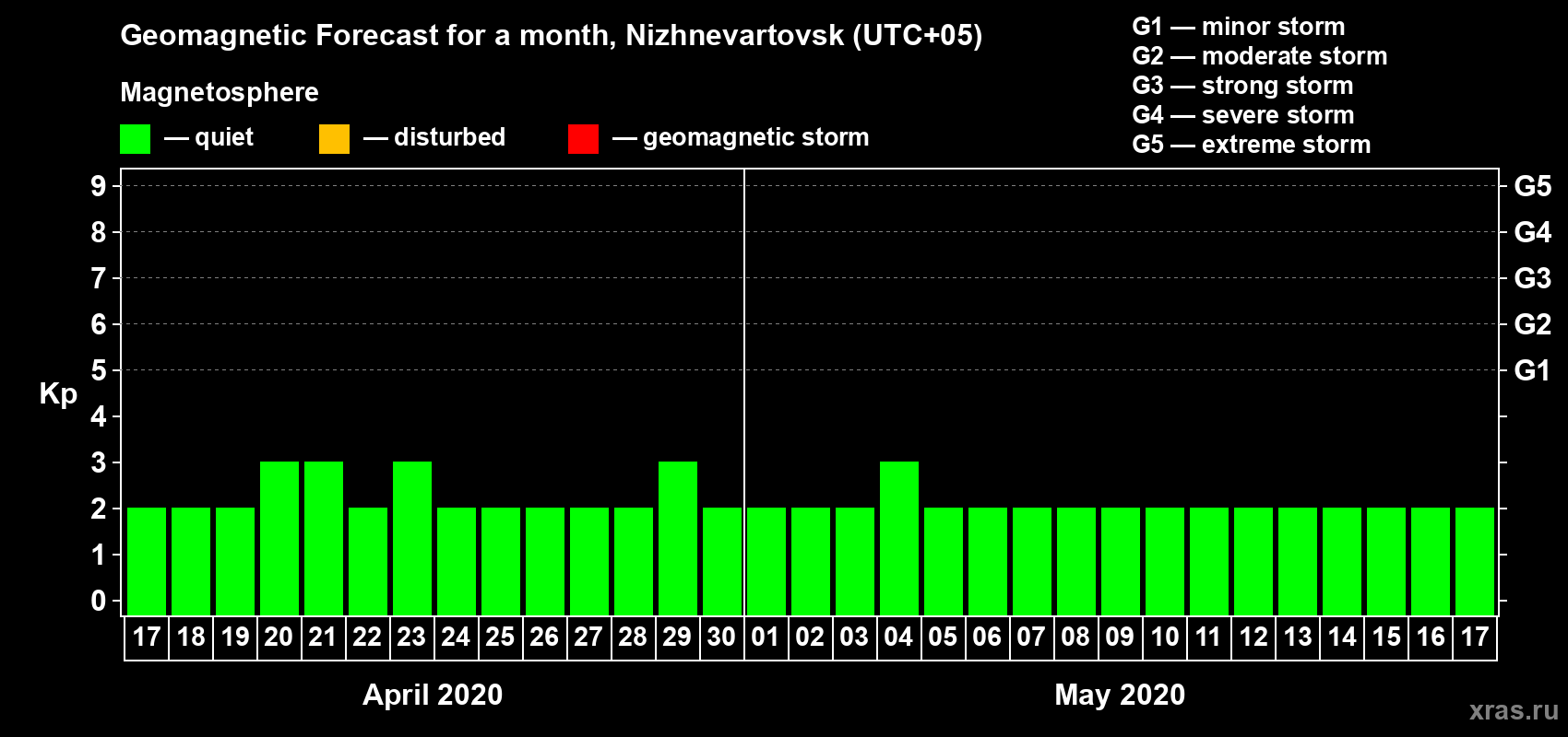 Geomagnetic activity forecast in Nizhnevartovsk — Apr 17, 2020