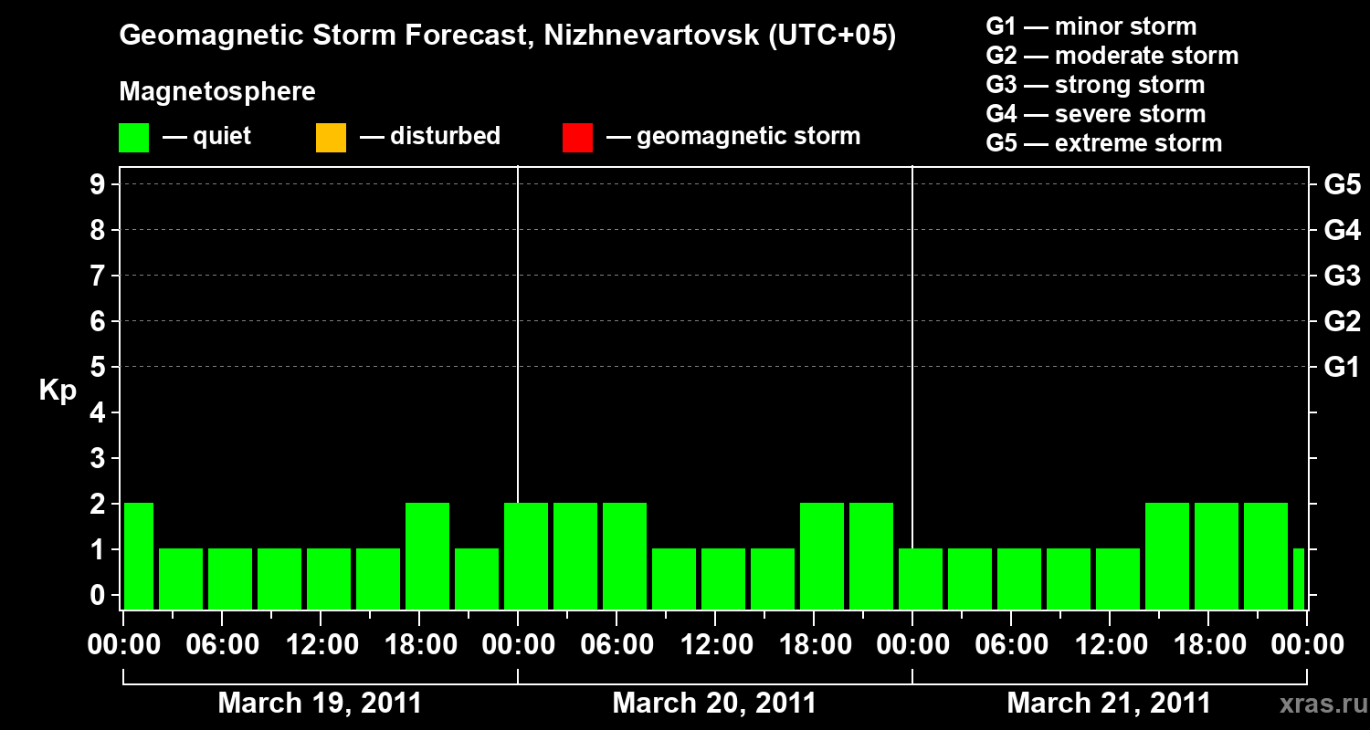 Geomagnetic storm forecast in Nizhnevartovsk for Mar 19, 2011