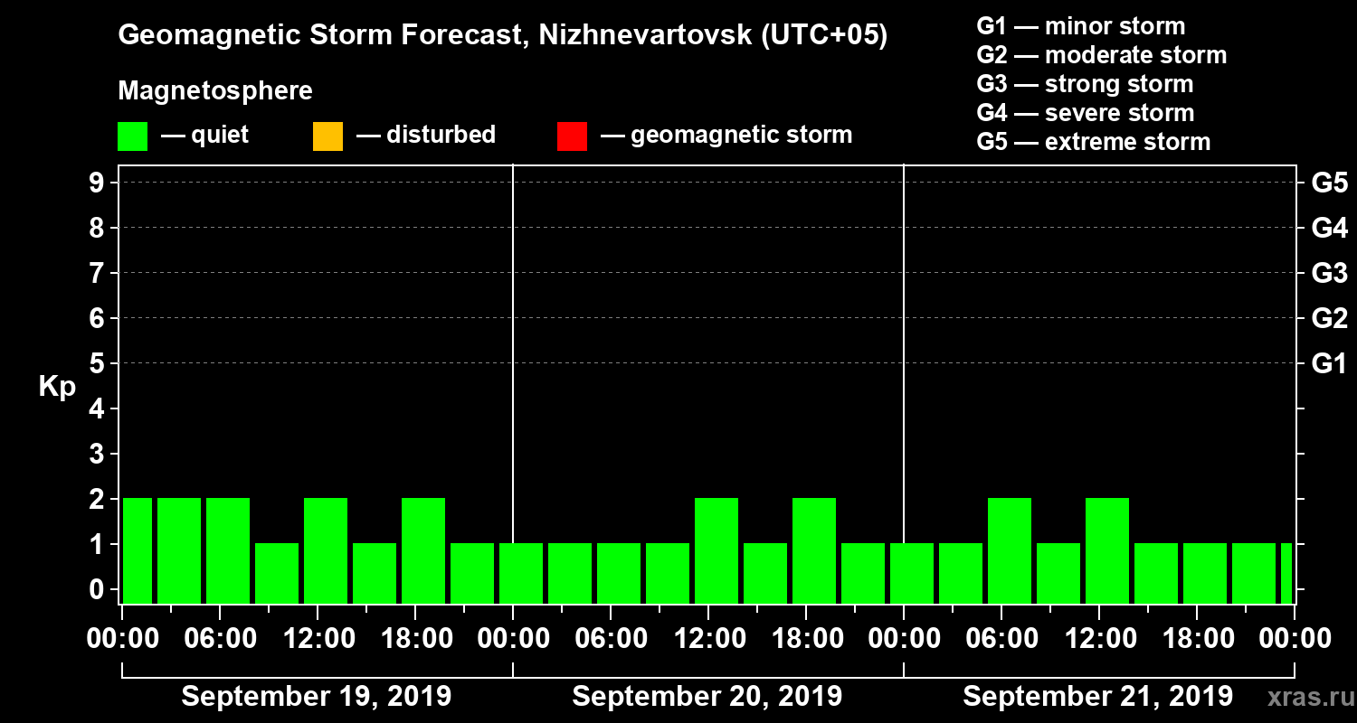 Geomagnetic storm forecast in Nizhnevartovsk for Sep 19, 2019