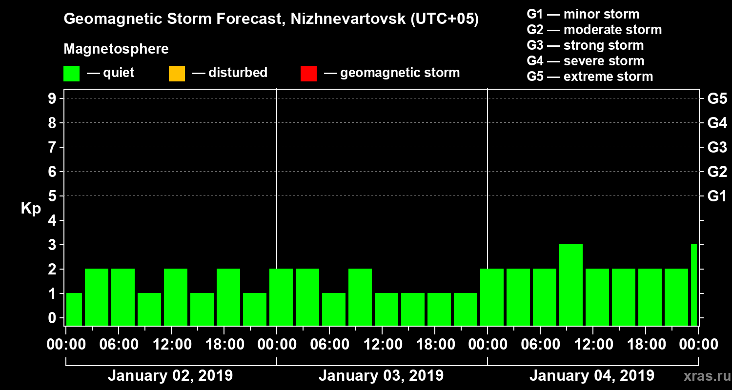 Geomagnetic storm forecast in Nizhnevartovsk for Jan 02, 2019