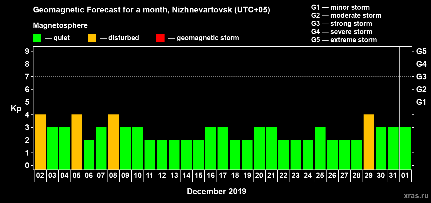 Geomagnetic activity forecast in Nizhnevartovsk — Dec 02, 2018