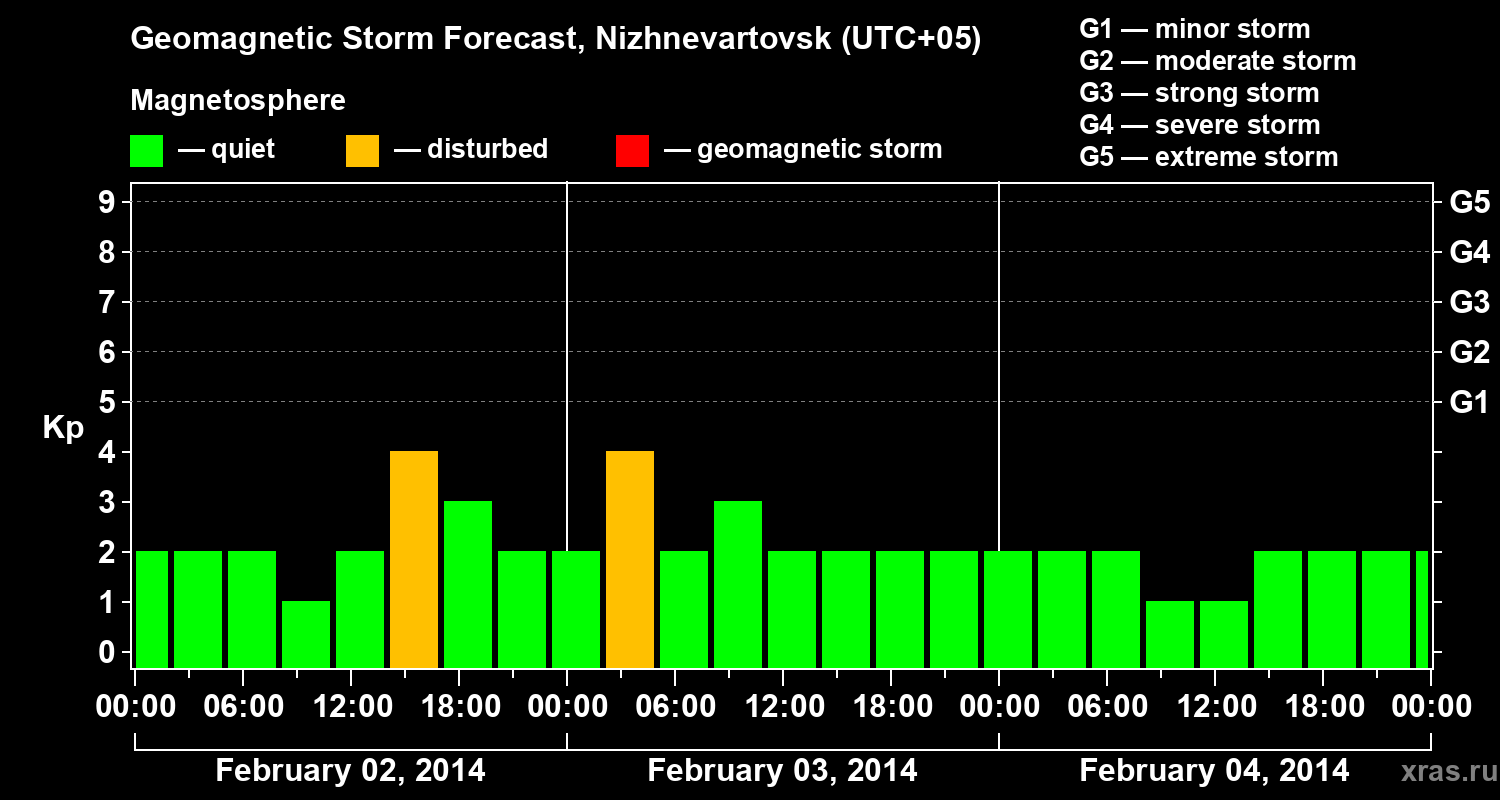 Geomagnetic activity forecast in Nizhnevartovsk — Feb 02, 2014
