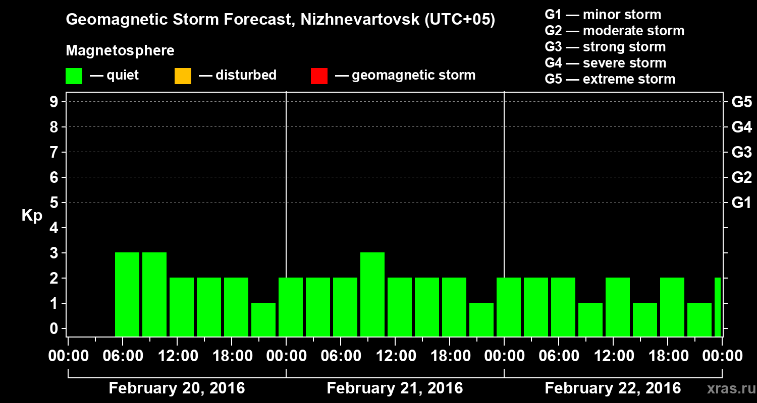 Geomagnetic storm forecast in Nizhnevartovsk for Feb 20, 2016