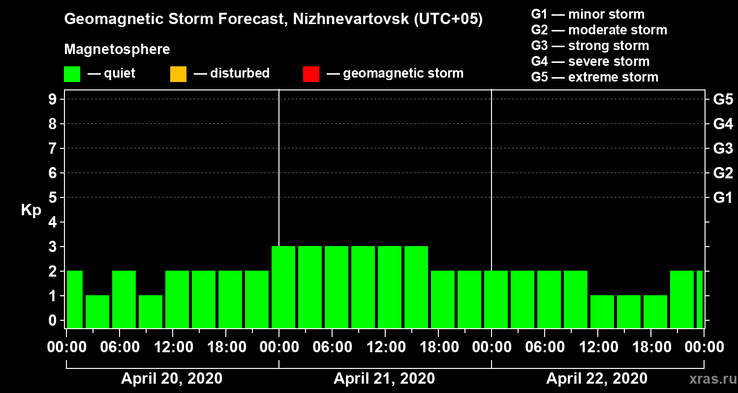 Geomagnetic activity forecast in Nizhnevartovsk — Apr 20, 2020