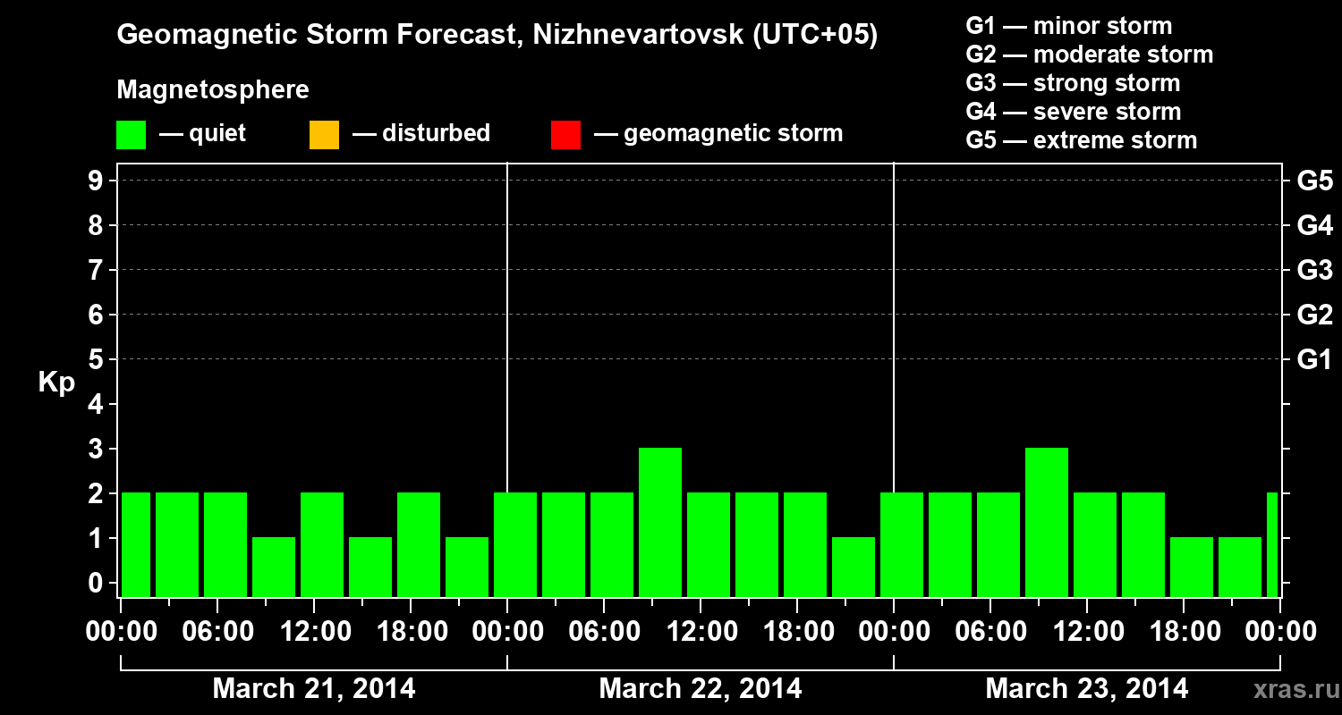 Geomagnetic storm forecast in Nizhnevartovsk for Mar 21, 2014