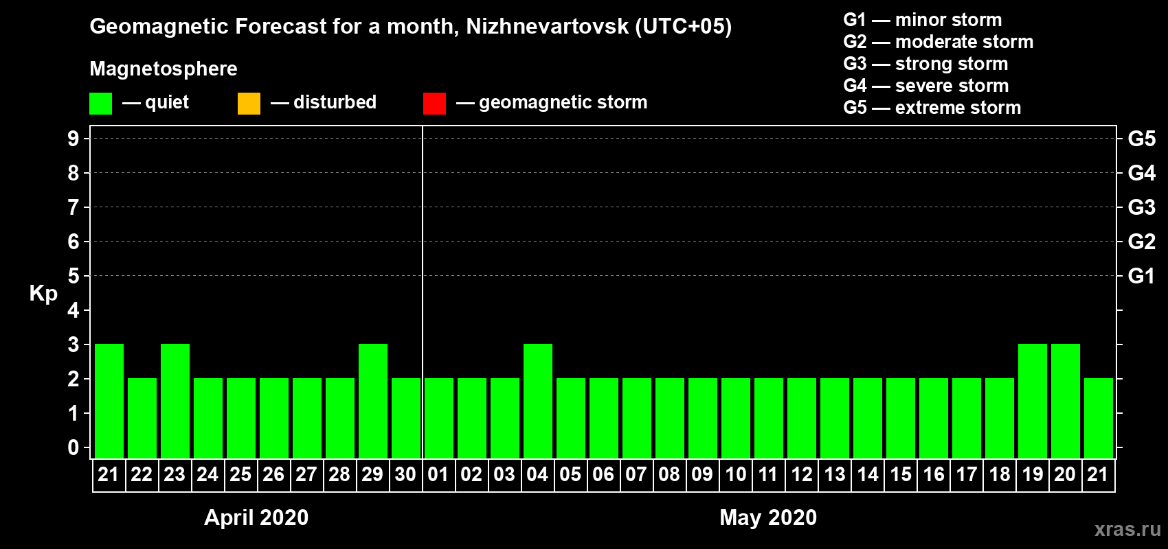 Geomagnetic activity forecast in Nizhnevartovsk — Apr 21, 2020
