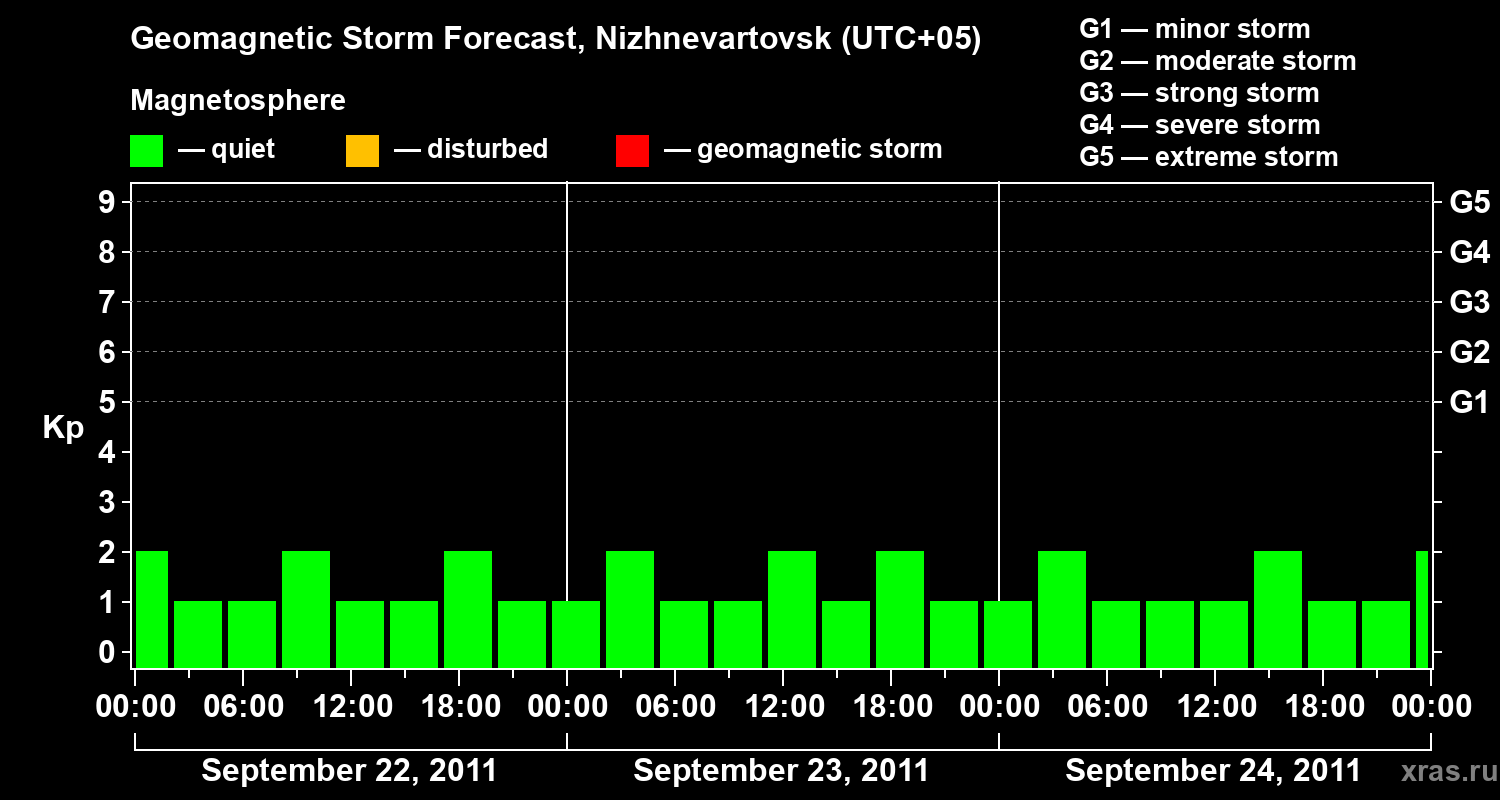 Geomagnetic storm forecast in Nizhnevartovsk for Sep 22, 2011