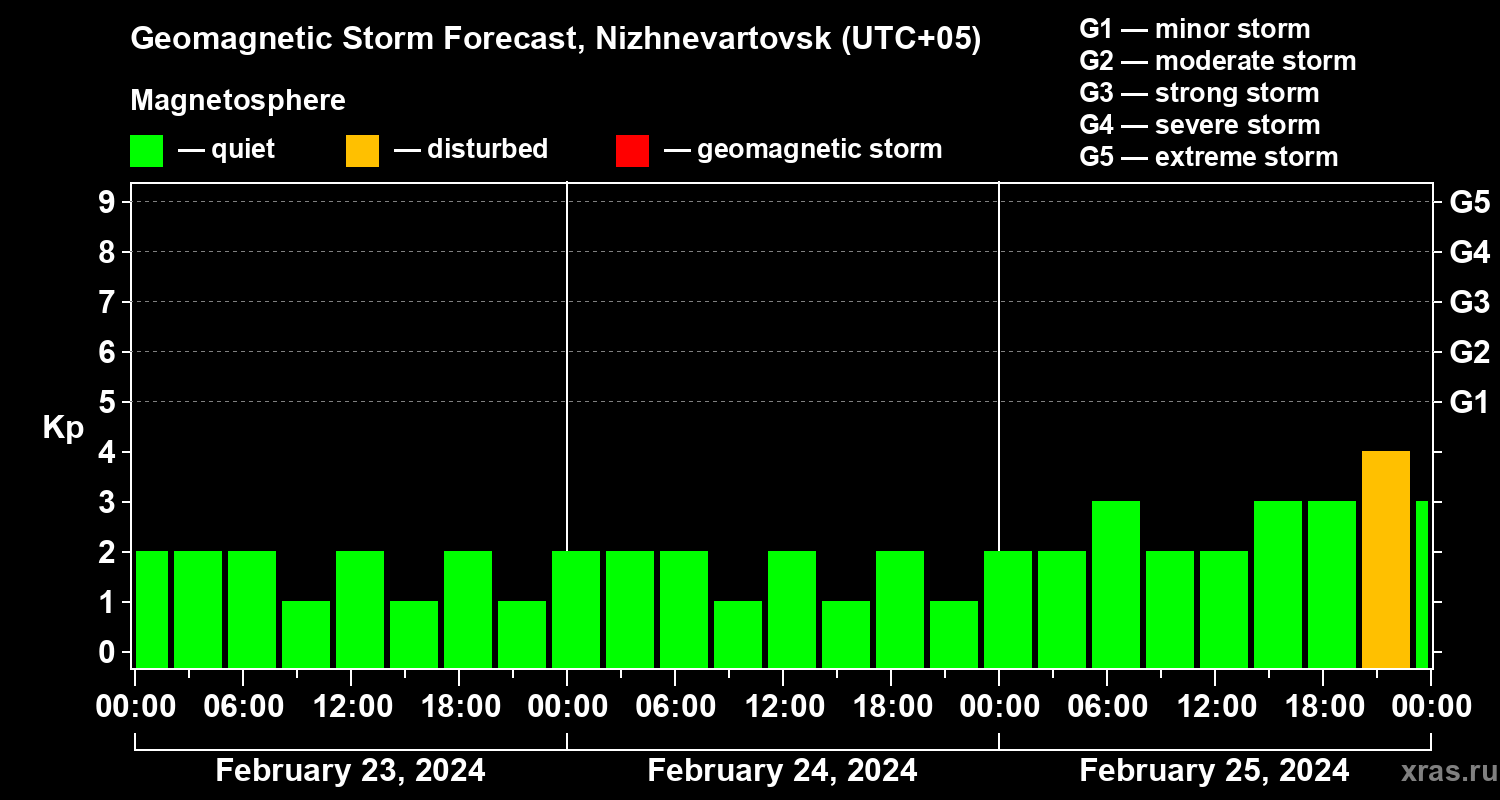 Geomagnetic storm forecast in Nizhnevartovsk for Feb 23, 2024