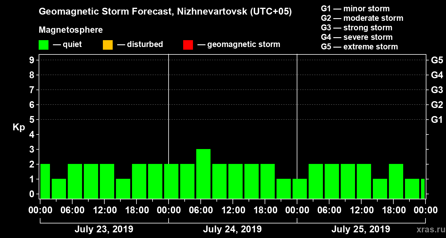 Geomagnetic storm forecast in Nizhnevartovsk for Jul 23, 2019