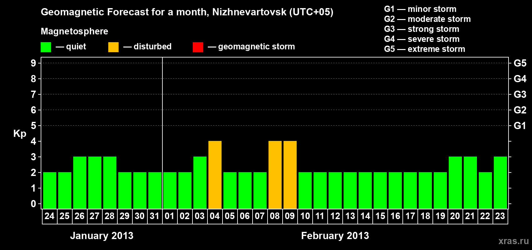 Geomagnetic storm forecast in Nizhnevartovsk for Jan 24, 2013