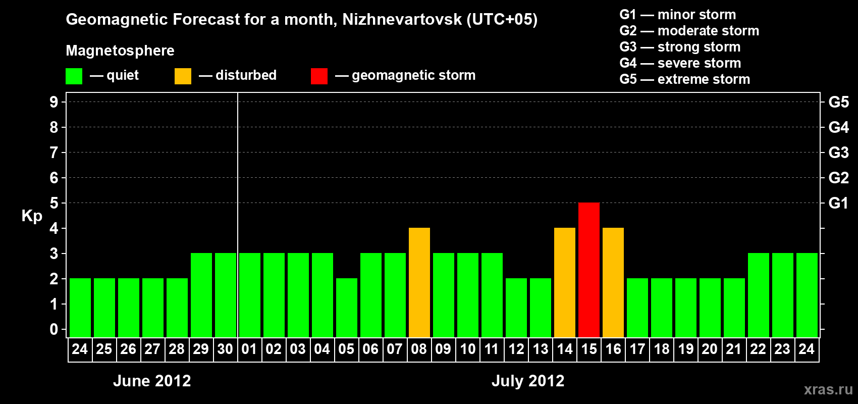 Geomagnetic storm forecast in Nizhnevartovsk for Jun 24, 2012