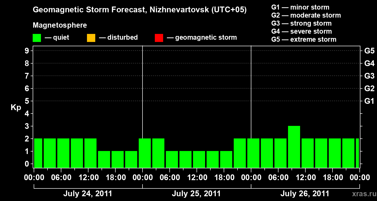 Geomagnetic storm forecast in Nizhnevartovsk for Jul 24, 2011