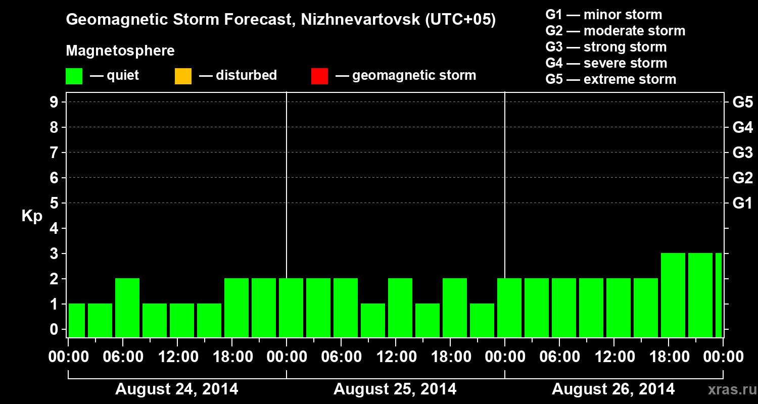 Geomagnetic activity forecast in Nizhnevartovsk — Aug 24, 2014