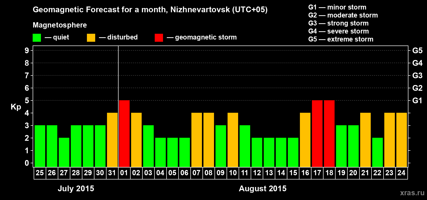 Geomagnetic storm forecast in Nizhnevartovsk for Jul 25, 2015