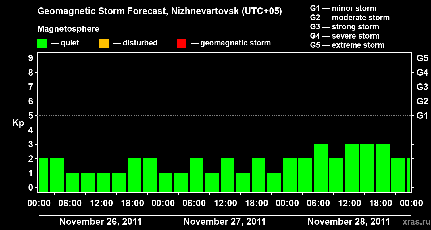 Geomagnetic storm forecast in Nizhnevartovsk for Nov 26, 2011