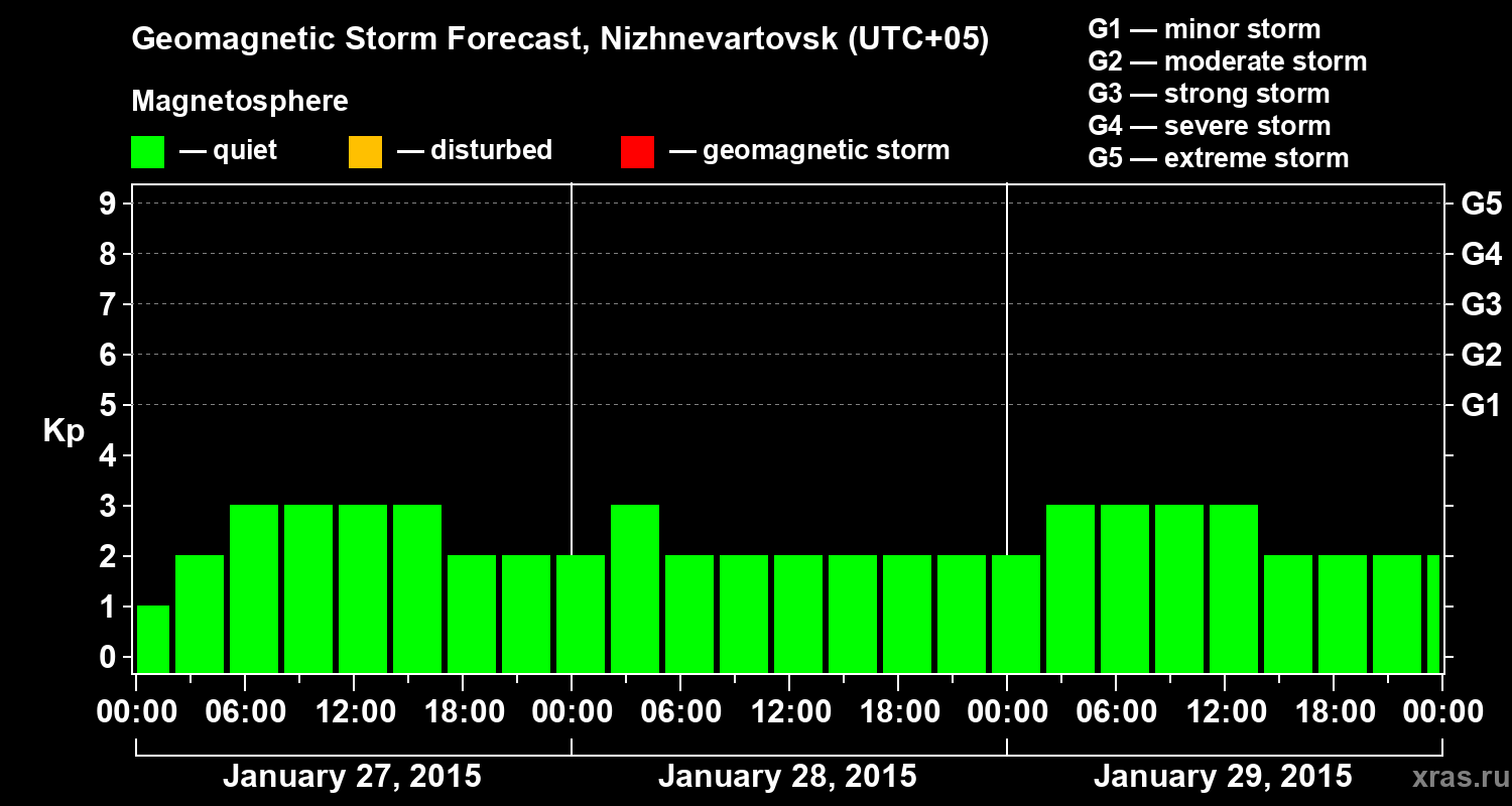 Geomagnetic activity forecast in Nizhnevartovsk — Jan 27, 2015