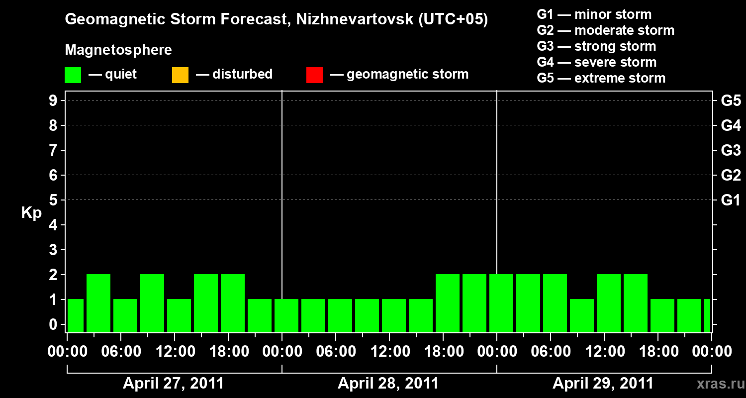 Geomagnetic storm forecast in Nizhnevartovsk for Apr 27, 2011