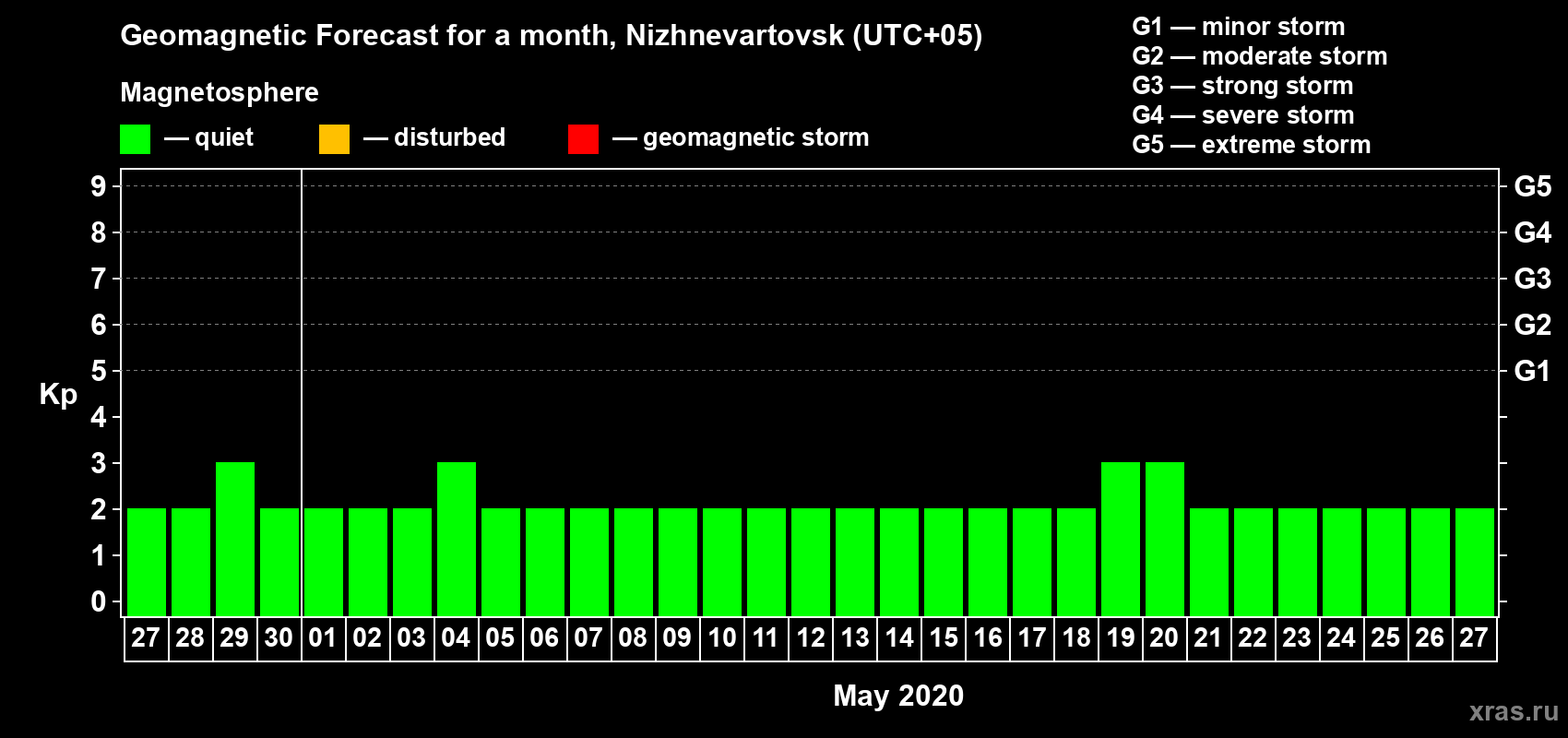 Geomagnetic storm forecast in Nizhnevartovsk for Apr 27, 2020