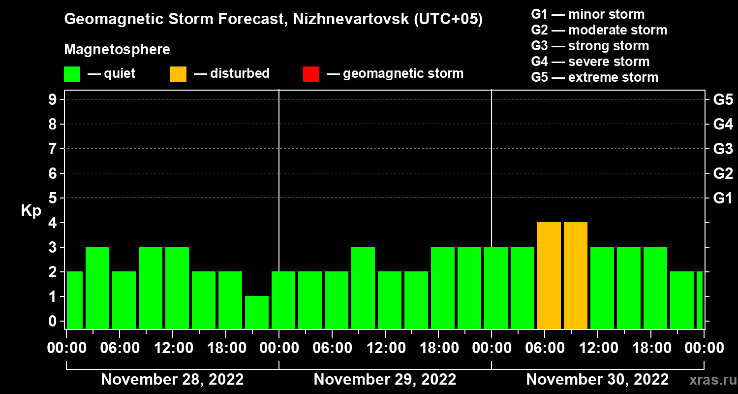 Geomagnetic activity forecast in Nizhnevartovsk — Nov 28, 2022