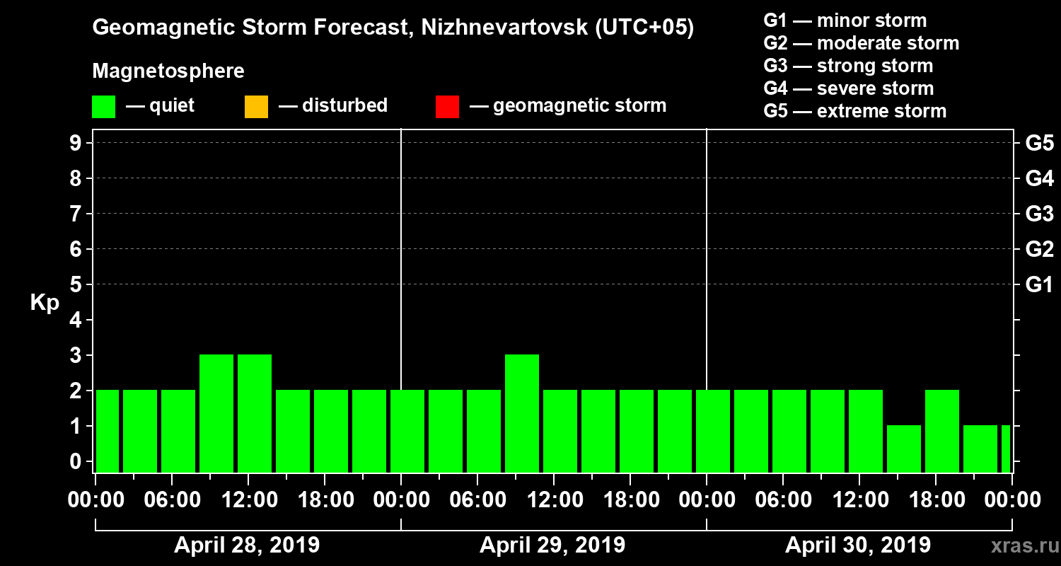 Geomagnetic storm forecast in Nizhnevartovsk for Apr 28, 2019