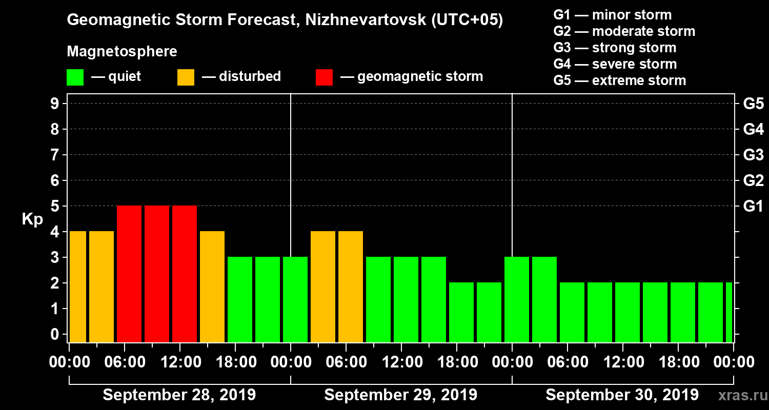Geomagnetic storm forecast in Nizhnevartovsk for Sep 28, 2019