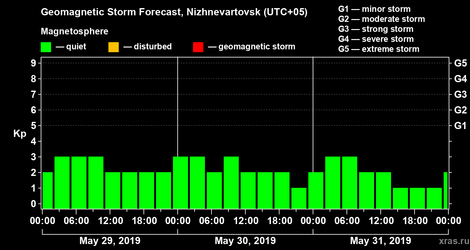 Geomagnetic activity forecast in Nizhnevartovsk — May 29, 2019