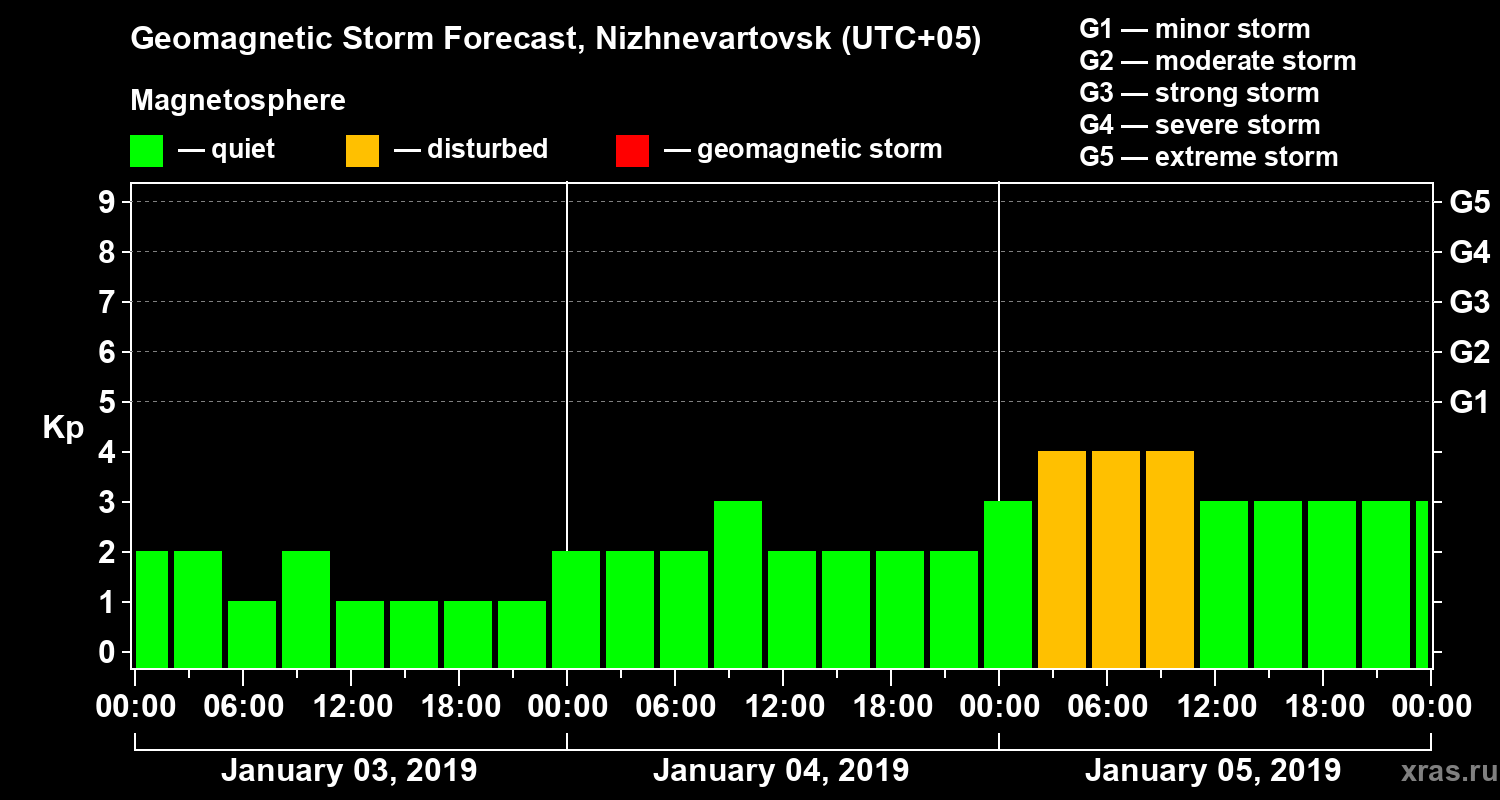 Geomagnetic storm forecast in Nizhnevartovsk for Jan 03, 2019