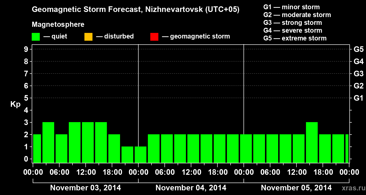 Geomagnetic storm forecast in Nizhnevartovsk for Nov 03, 2014