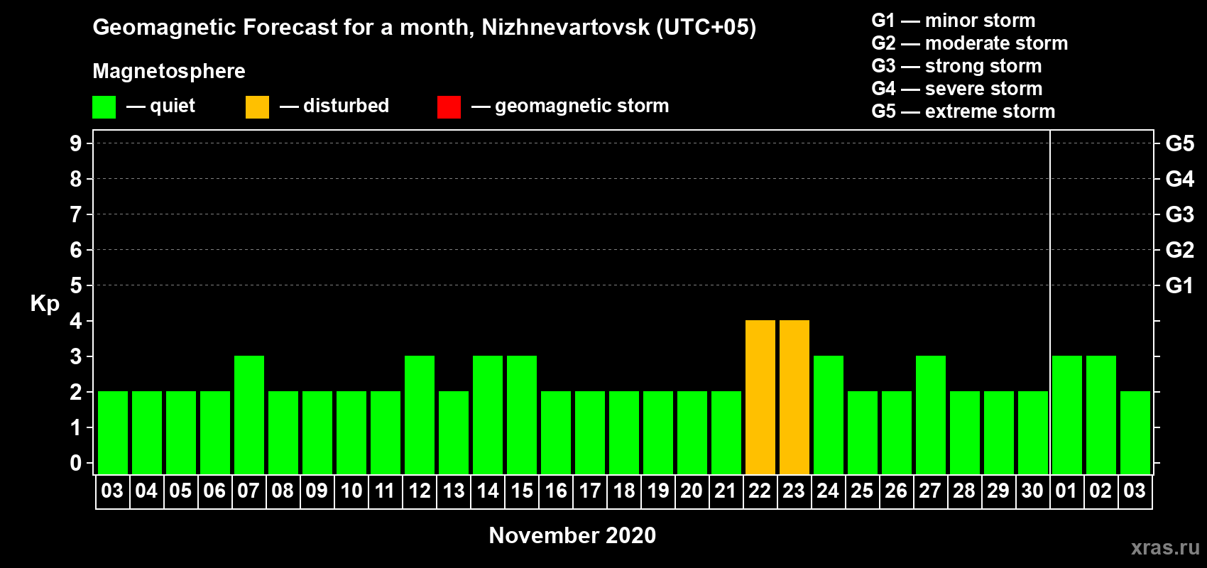 Geomagnetic activity forecast in Nizhnevartovsk — Nov 03, 2020