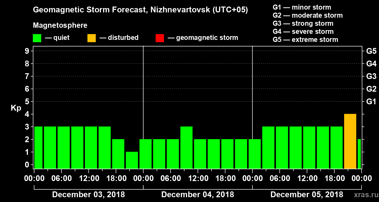 Geomagnetic storm forecast in Nizhnevartovsk for Dec 03, 2018