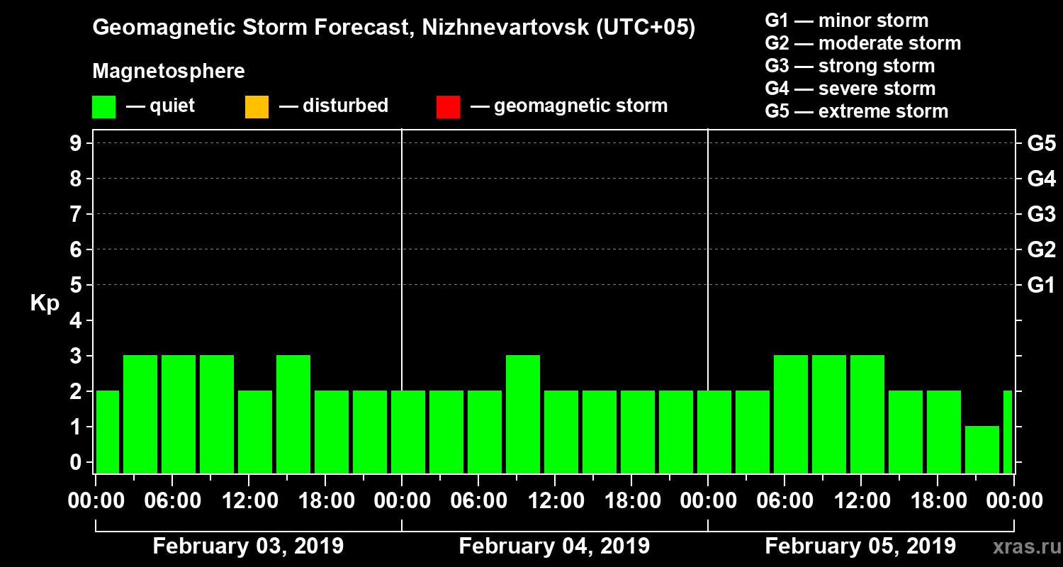 Geomagnetic storm forecast in Nizhnevartovsk for Feb 03, 2019