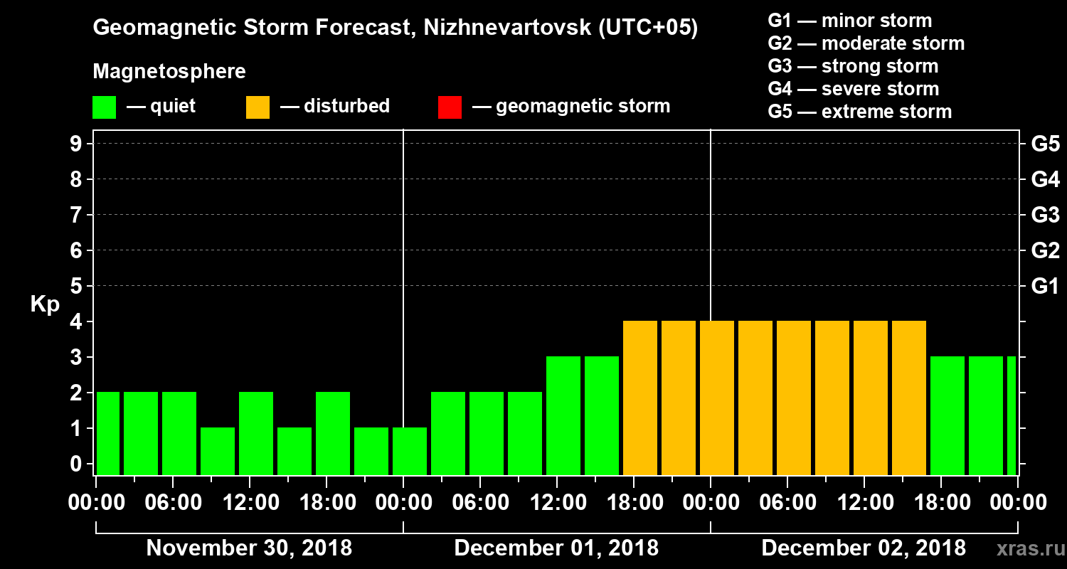 Geomagnetic storm forecast in Nizhnevartovsk for Nov 30, 2018