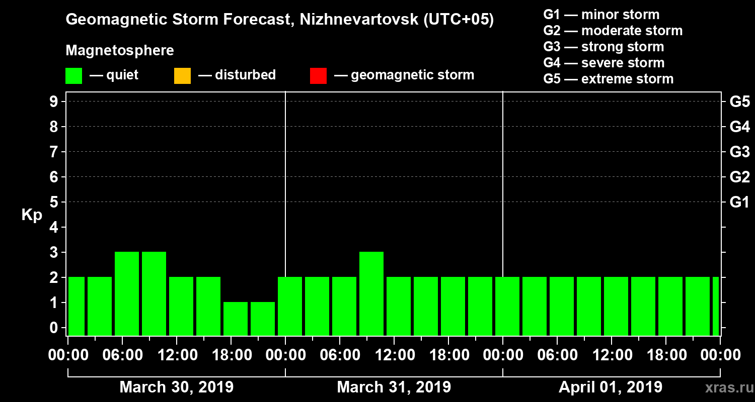 Geomagnetic storm forecast in Nizhnevartovsk for Mar 30, 2019
