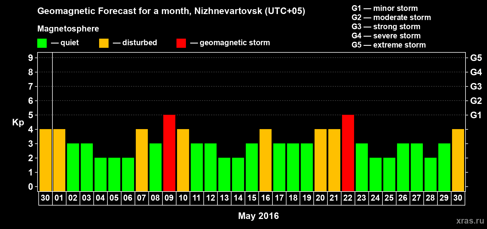 Geomagnetic storm forecast in Nizhnevartovsk for Apr 30, 2016
