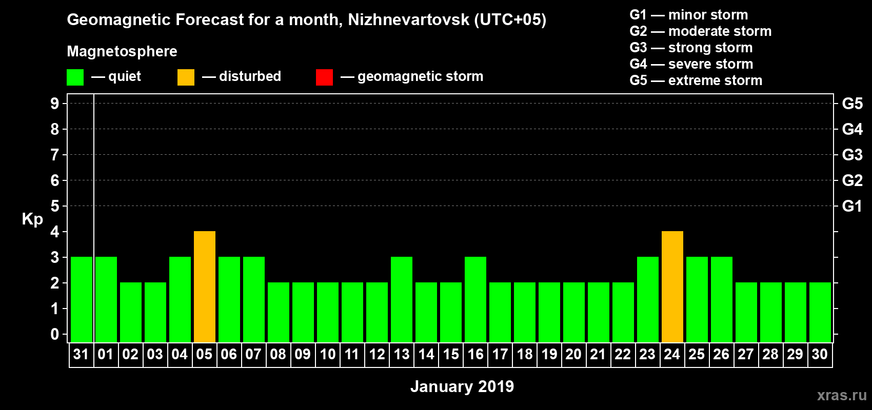 Geomagnetic storm forecast in Nizhnevartovsk for Dec 31, 2018