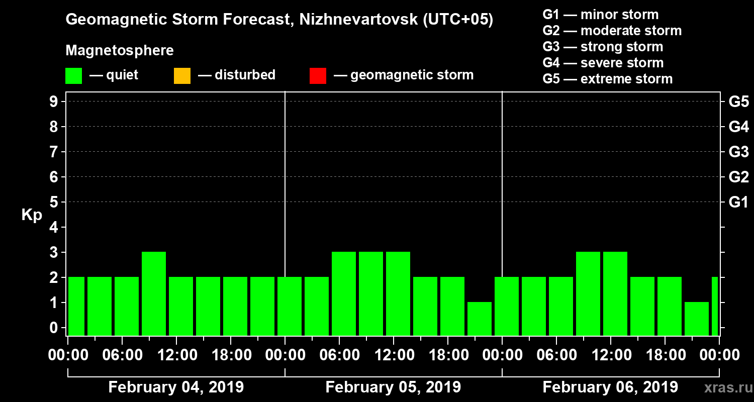Geomagnetic storm forecast in Nizhnevartovsk for Feb 04, 2019