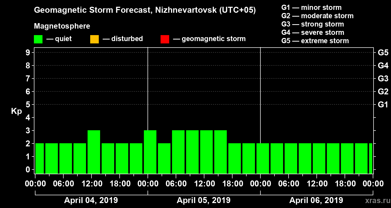Geomagnetic storm forecast in Nizhnevartovsk for Apr 04, 2019