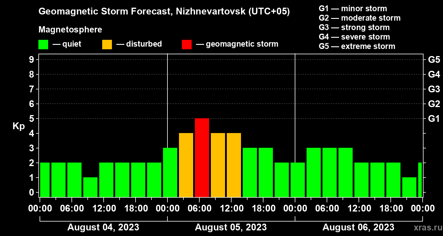 Geomagnetic activity forecast in Nizhnevartovsk — Aug 04, 2023