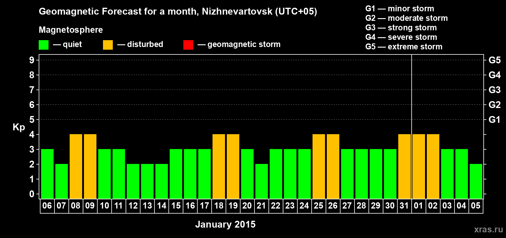 Geomagnetic storm forecast in Nizhnevartovsk for Jan 06, 2015