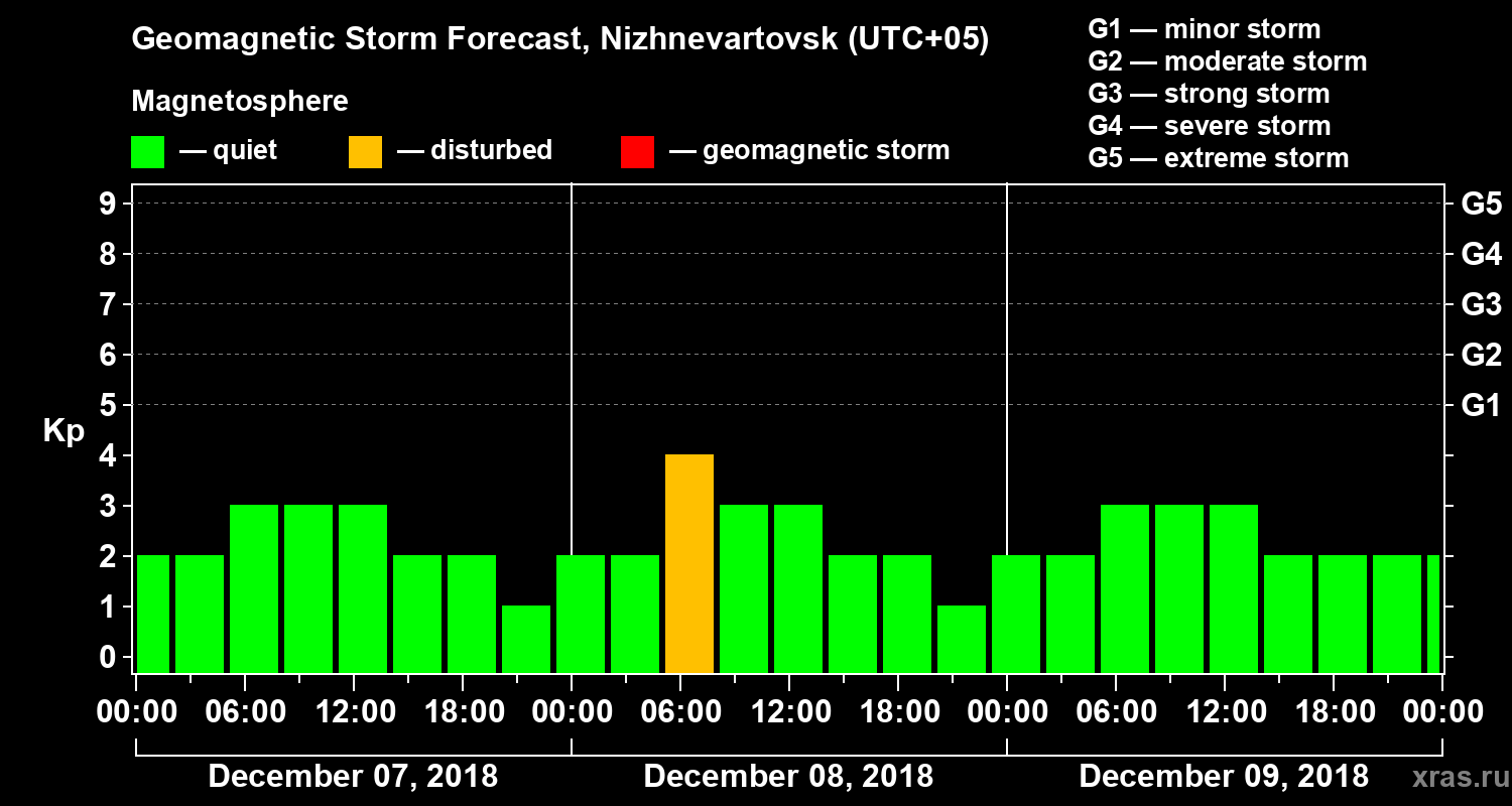 Geomagnetic storm forecast in Nizhnevartovsk for Dec 07, 2018