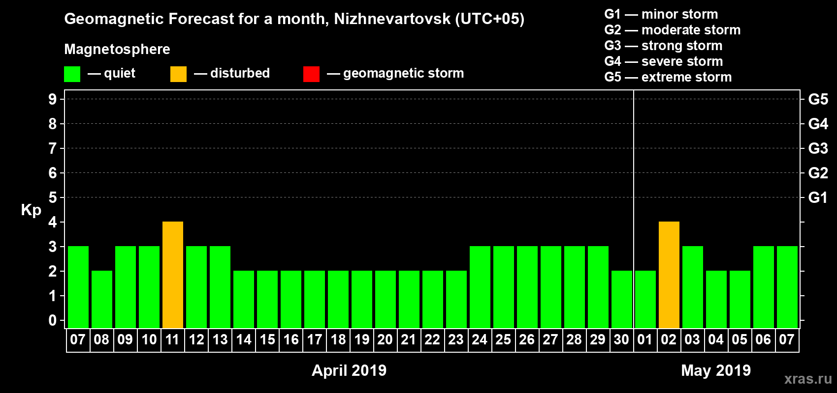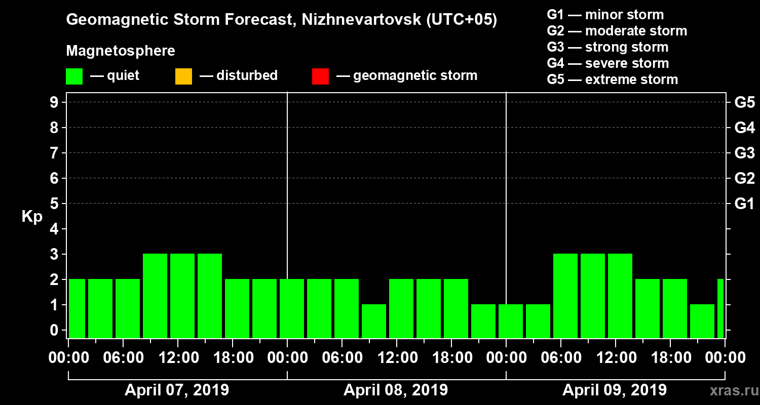 Geomagnetic storm forecast in Nizhnevartovsk for Apr 07, 2019
