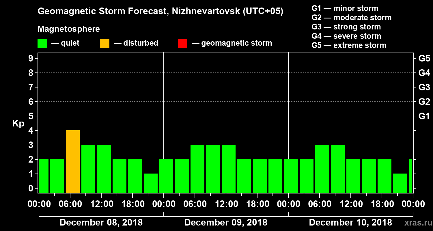 Geomagnetic storm forecast in Nizhnevartovsk for Dec 08, 2018