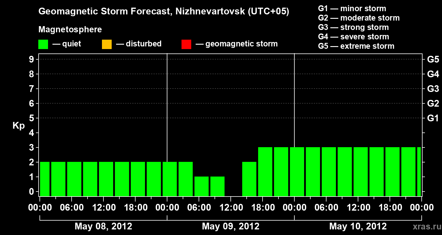 Geomagnetic activity forecast in Nizhnevartovsk — May 08, 2012